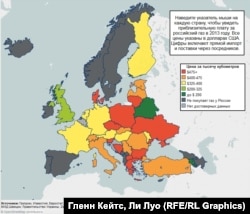 Некоторые из стран, полагающихся на поставки российского газа, являются в то же время ее жесточайшими критиками. Все три прибалтийских государства – Латвия, Литва и Эстония – оказавшие в нынешнем кризисе прочную поддержку Украине, получают 100 процентов поставок своего природного газа из России. Украина получает из России 72 процента газа. Ни одна из этих стран не платит менее чем 416 долларов за тысячу кубометров газа.