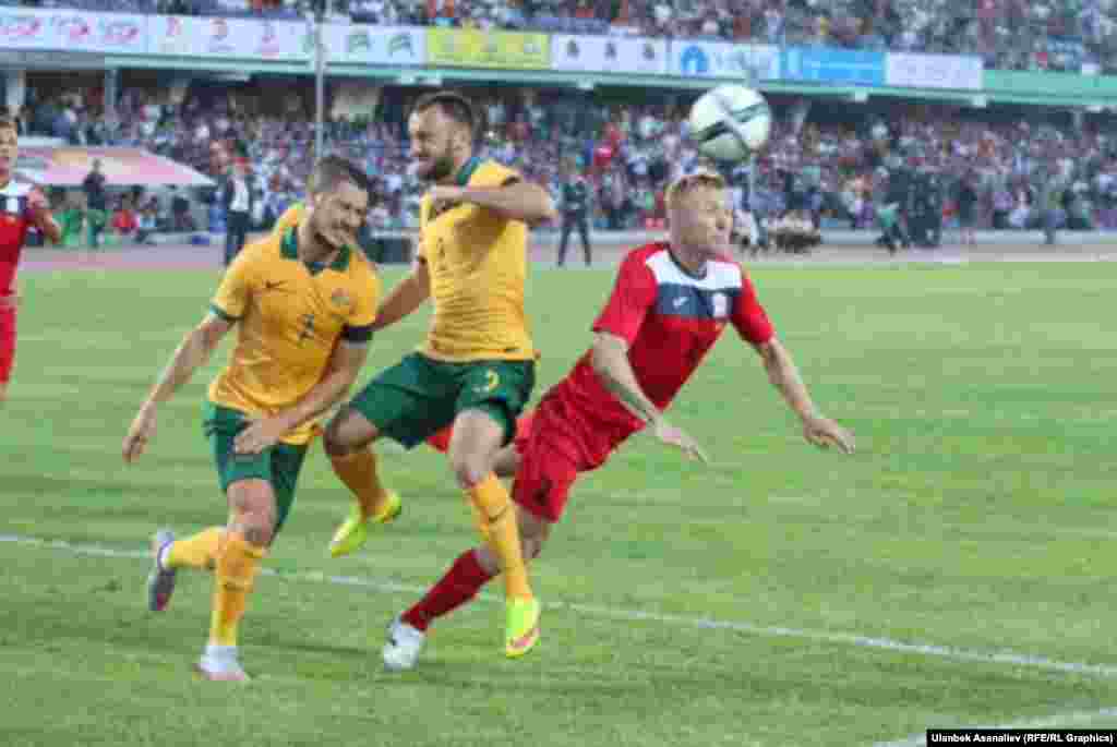 Сборная Кыргызстана по футболу проиграла Австралии в рамках отборочного турнира Чемпионата мира по футболу-2018. Игра состоялась вчера на стадионе имени Долона Омурзакова в Бишкеке. 11 июня сборная Кыргызстана в первом матче отборочного раунда обыграла Бангладеш со счетом 3:1. Кыргызстан играет в группе «В» против команд Австралии, Иордании, Таджикистана и Бангладеш.