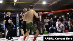 Здесь, в собственном зале на окраине Москвы, они все на равных. Вот например, спортсмен из Кыргызстана дерется с соперником из Таджикистана.