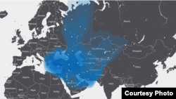 На карте зоны покрытия луча Central Asia-Ku спутника Eutelsat 70B это наглядно видно. Скриншот с сайта Eutelsat