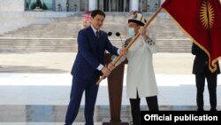 «Спорт – это большая борьба. Пусть ваши имена будут вписаны золотыми буквами в историю спорта нашей республики. Пусть вами гордятся все поколения», - сказал глава кабмина Улукбек Марипов и передал флаг Кыргызстана капитану олимпийской сборной Атабеку Азисбекову.