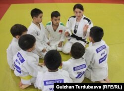 В Кыргызстане дети могут заниматься дзюдо с пяти лет. Тренер юных спортсменов Айканыш Аманова говорит, что в последнее время многие родители стали отдавать своих детей на занятия этим видом спорта: