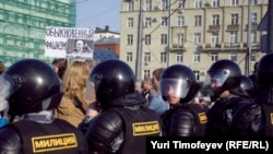 Корреспондент РС Юрий Тимофеев сообщает о сотне задержанных. Лидер "Яблока" Сергей Митрохин сообщил о 90 задержанных яблочниках.